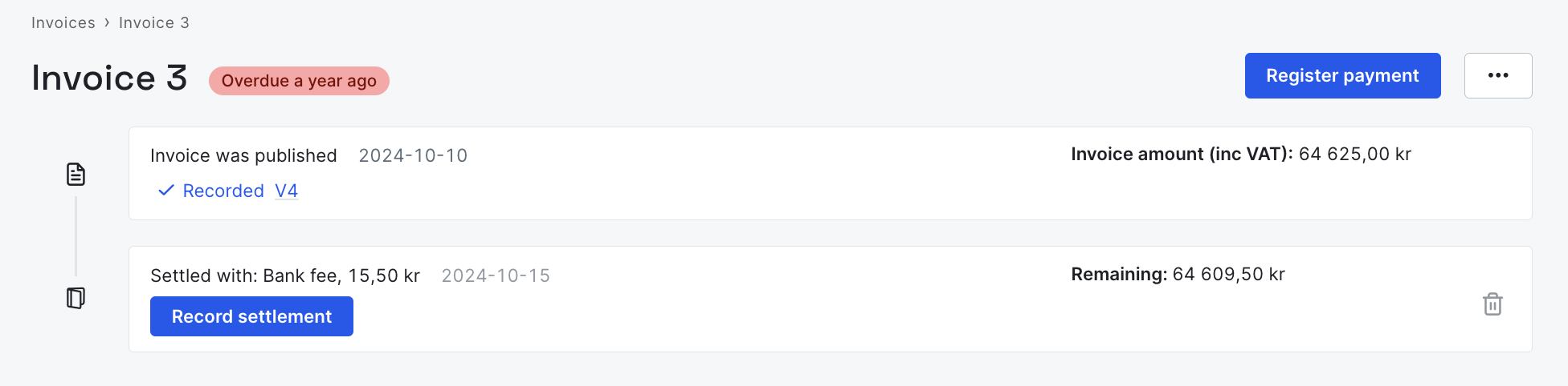 }At this stage, the settlement is created but not yet recorded in bookkeeping.