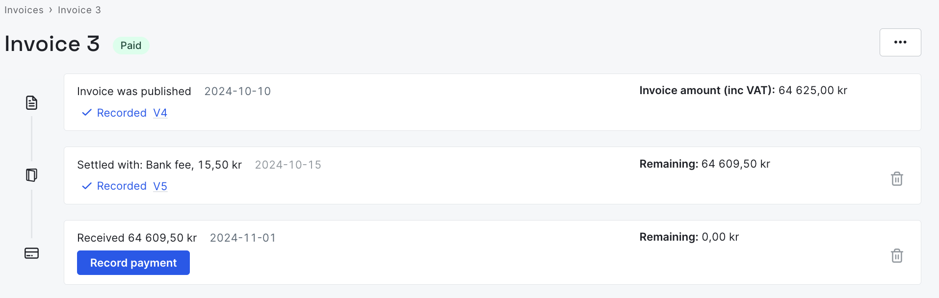 }After this step, the payment is fully recorded and linked to its corresponding journal entry in the bookkeeping system.